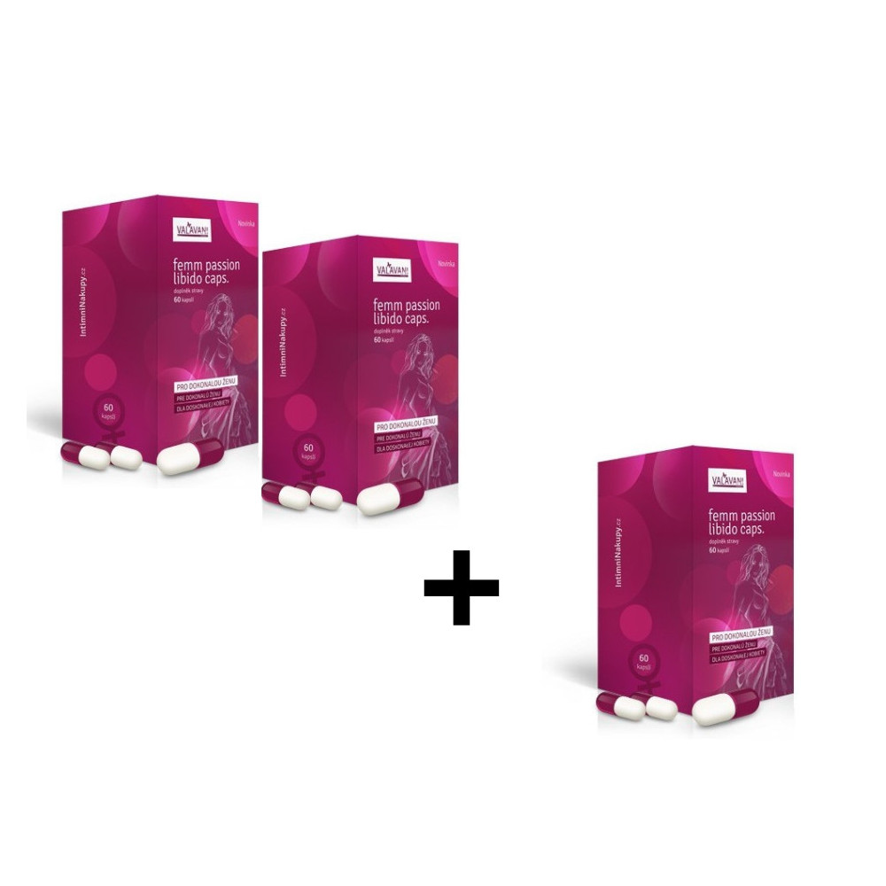 💬 Zkušenosti zákaznic„Účinky jsem začala zaznamenávat asi po 14 dnech, na konci měsíce už to bylo perfektní. Mám teď ze sexu úplně jiný zážitek. Navíc po třech měsících se mi konečně srovnala menstruace. Mám také daleko víc energie a cítím se psychicky mnohem lépe. Už jsem produkt doporučila svým známým.“ Petra, 28 let „Jsem v přechodu a příznaky spojené s menopauzou mi po jednom balení skoro úplně přešly. Určitě budu pokračovat. A co se týká zvýšení libida, tak to opravdu funguje – sex je teď mnohem intenzivnější a záživnější.“ Klára, Havířov *Zkušenosti zákaznic jsou individuální a mohou se lišit v závislosti na životním stylu, zdravotním stavu a délce užívání. ❓ FAQ – Často kladené otázkyZa jak dlouho se to obvykle „projeví“?Je to individuální. Některé ženy popisují první změny už během 2–3 týdnů, plnější efekt často při pravidelném užívání v rámci delší kúry. Je produkt vhodný i v přechodu?Řada žen ho v přechodu zařazuje. Pokud užíváš léky, řešíš zdravotní potíže nebo hormonální léčbu, doporučujeme konzultaci s lékařem. Můžu to kombinovat s dalšími doplňky?Většinou ano – záleží na režimu a citlivosti. Pokud bereš léky (zejména na tlak, srážlivost krve apod.), poraď se s odborníkem. Proč je v balíčku 3×60 kapslí (2+1)?Protože ženy často volí kúru – a akce 2+1 je ekonomicky výhodnější a zároveň pohodlná (nemusíš hlídat další objednávku). 🔍 SEO otázky & odpovědiJak podpořit ženské libido přirozeně?Ženy často hledají kombinaci: méně stresu, více spánku, péče o vztah a k tomu doplněk s bylinami a látkami používanými v „libido“ formulích. Valavani Femm Passion Libido je jednou z možností pro pravidelnou rutinu. Doplněk stravy na libido pro ženy v přechodu?V přechodu ženy často řeší výkyvy pohody, únavu a pokles touhy. Pokud hledáš šetrnou podporu, Femm Passion Libido je oblíbená volba – vždy ale ber v potaz individualitu a případnou léčbu. ❤️ Pro sebe. Pro radost. Pro vztah.