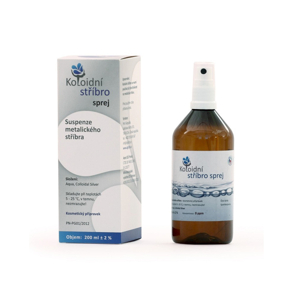 UpozorněníVýrobek není určen osobám s přecitlivělostí na stříbro. Před prvním použitím doporučujeme ověřit případnou alergii na malé ploše pokožky. Při zasažení očí vyplachujte vodou, a pokud potíže přetrvávají, vyhledejte lékařskou pomoc. Uchovávejte mimo dosah dětí. Těhotné ženy a kojící matky by měly použití koloidního stříbra konzultovat se svým lékařem. Produkt je určen výhradně pro kosmetické použití.