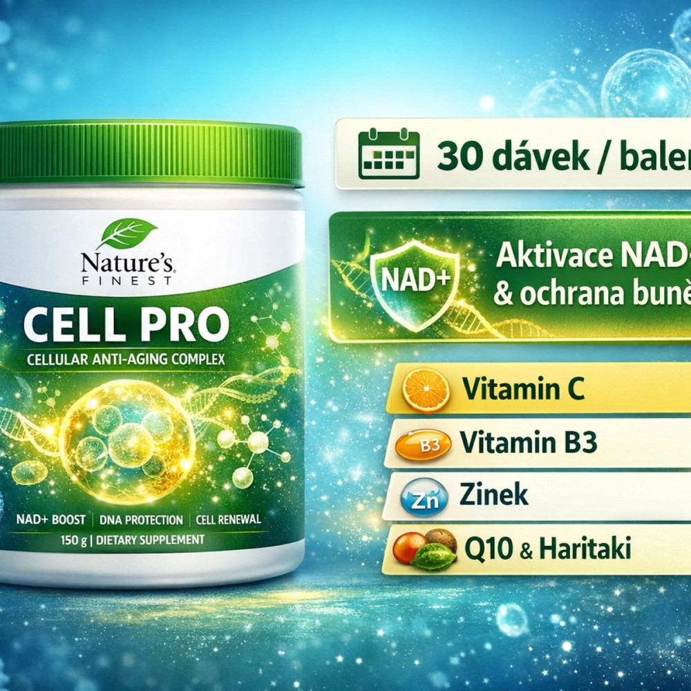 Nature's Finest CELL PRO – anti-aging, který nezačíná u vrásek, ale u buněk 💚Nature's Finest CELL PRO (150 g) je práškový doplněk stravy pro každodenní rutinu, pokud chceš řešit buněčnou energii, regeneraci a “chytré stárnutí” včas – bez přehnaných slibů, zato s dobře postaveným složením. 👉 Jednoduše: když mají buňky dostatek energie a ochrany, tělo funguje lépe – více vitality, lepší regenerace a menší pocit únavy.