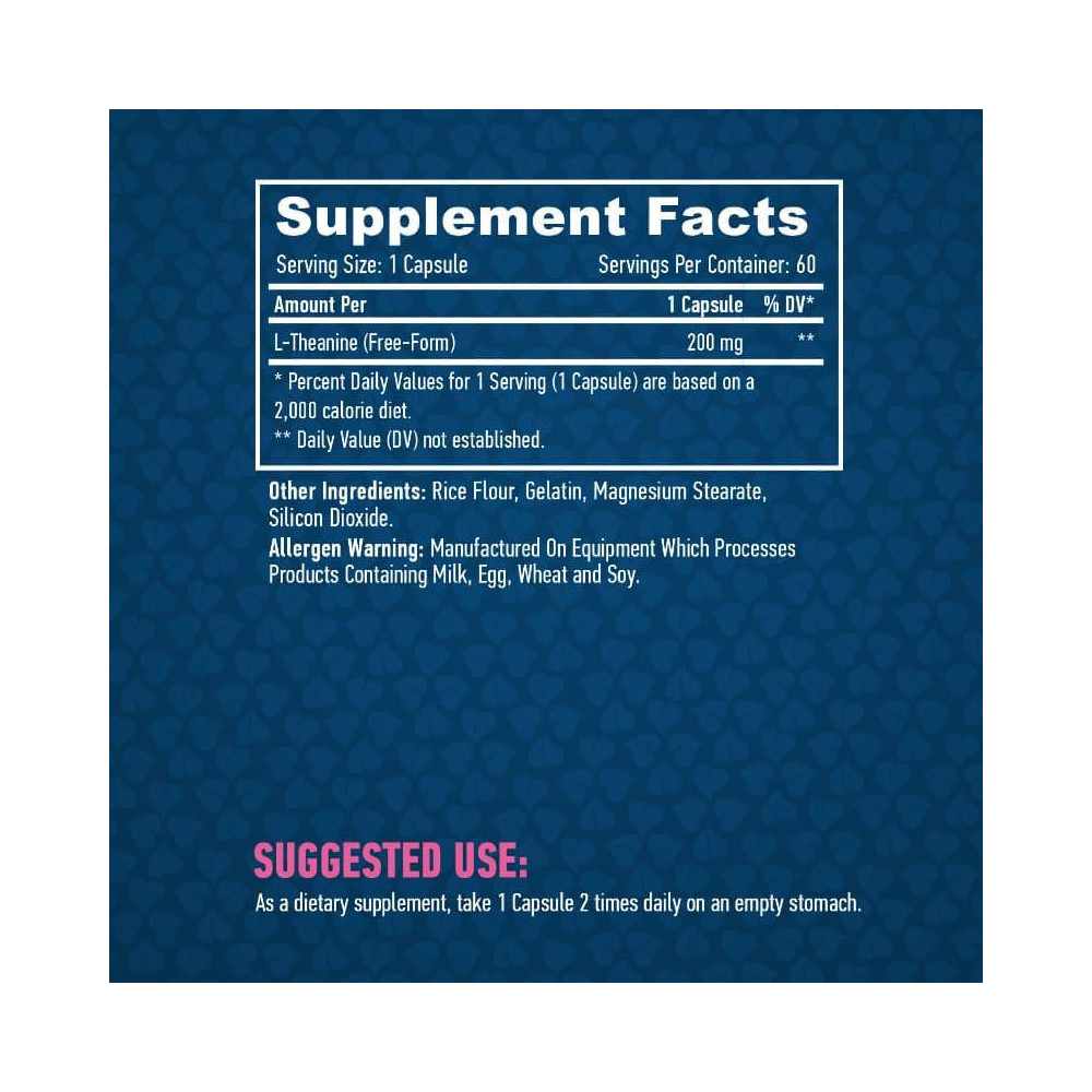 100% L-Theanin 200mg 60 kapslí, může podporovat imunitní systém, může podporovat paměť, silné antioxidační vlastnosti