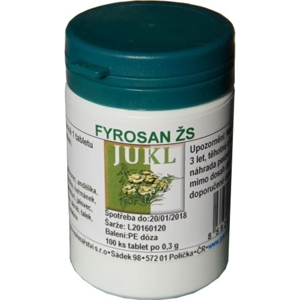JUKL FYROSAN ŽS 100 ksPoužitíFyrosan ŽS je tradičně laděný doplněk stravy, který lidé zařazují pro podporu zažívání a trávící pohody. Hodí se zejména ve chvílích, kdy máš pocit „těžkého břicha“, po vydatnějším jídle nebo když chceš mít trávení více pod kontrolou. V rámci běžného životního stylu se používá jako podpora trávicího ústrojí – zejména v souvislosti s komfortem po jídle a s celkovou „trávicí rutinou“.