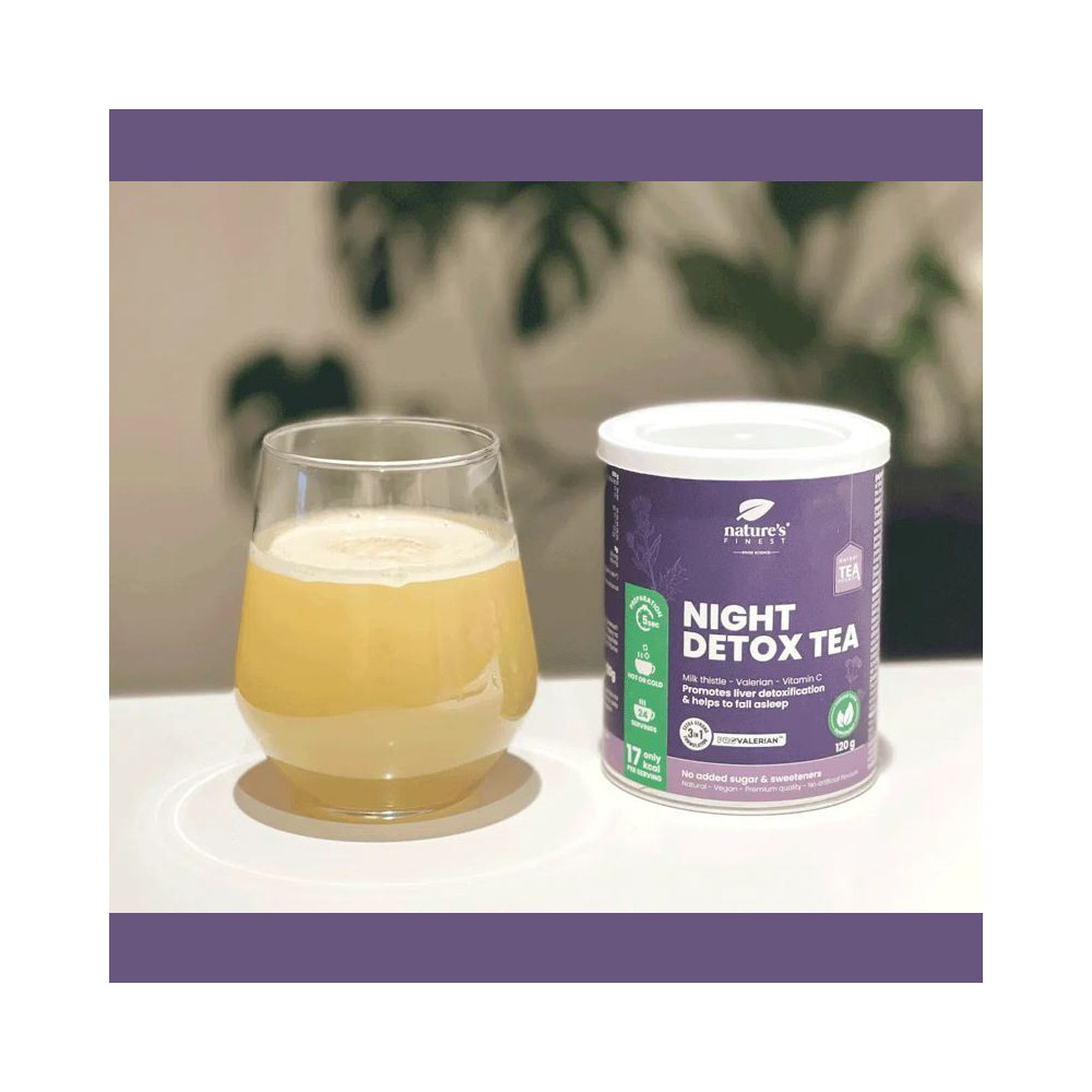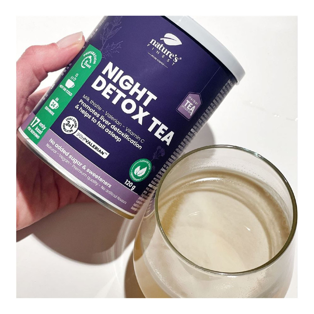 Nature’s Finest Night Detox Tea je instantní večerní čajová směs pro noční režim – když chceš po dni zvolnit, doplnit tekutiny a podpořit „reset“ bez těžkého žaludku. V receptuře najdeš ProValerian™, ostropestřec, bílý čaj a vitamín C.