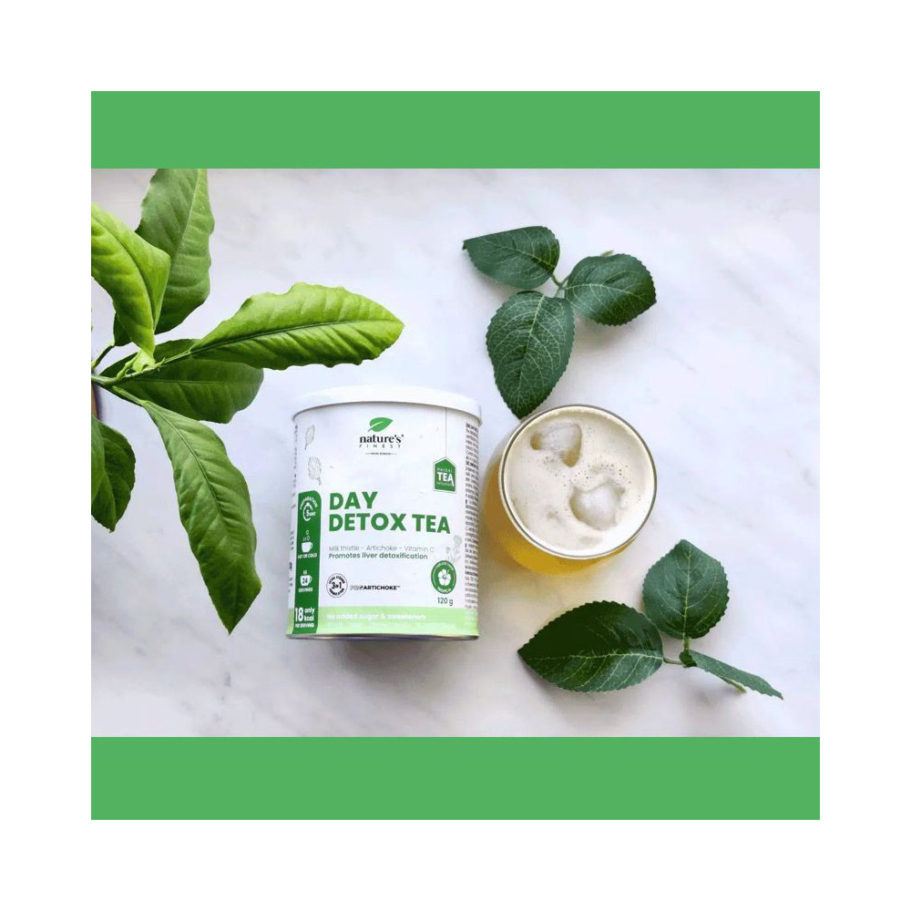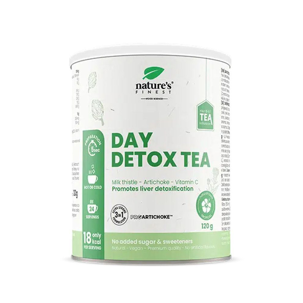 Day Detox Tea je doplněk stravy s instantní čajovou směsí obsahující extrakt z artyčoku ProArtichoke™, ostropestřce, bílého čaje a vitamínu C. Tento komplex byl navržen pro každodenní detoxikaci organismu, podporu trávení a činnosti jater.
