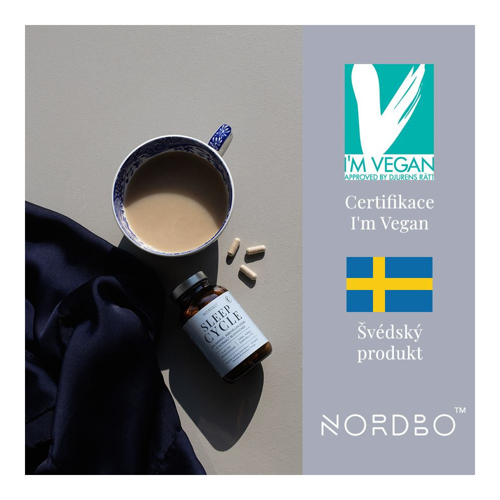 Nordbo Sleep Cycle je sofistikovaný doplněk stravy navržený pro všechny, kteří hledají přirozený způsob, jak zlepšit kvalitu spánku, usínání a celkovou regeneraci organismu. Osm pečlivě vybraných účinných látek tvoří silnou synergii pro harmonizaci spánkového režimu i rovnováhu nervové soustavy.