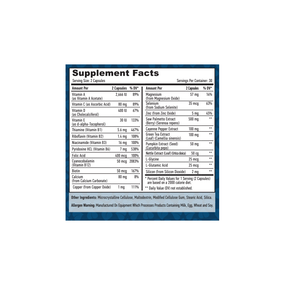 • Cílená kombinace bylin a mikroživin pro mužský komfort.