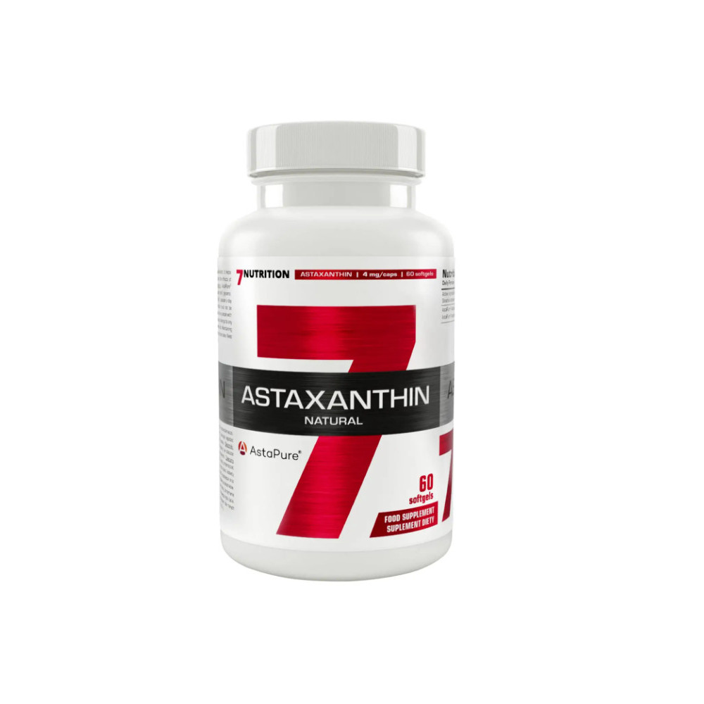 7Nutrition Astaxanthin (AstaPure®) – přírodní astaxanthin z mikrořasy Haematococcus pluvialis ve 60 vege tobolkách, zkoumaný pro antioxidační vlastnosti a souvislost s ochranou buněk před oxidačním stresem.*