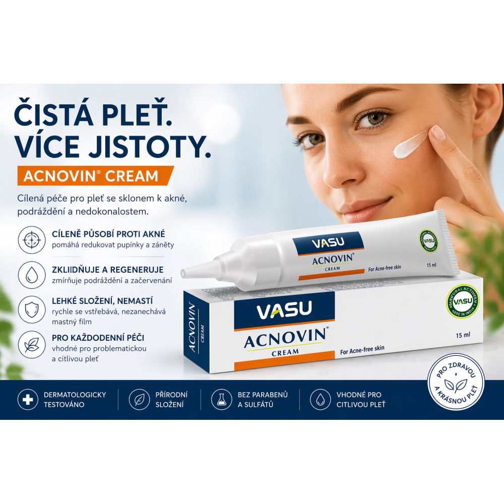 Acnovin je jemný, rychle vstřebatelný krém určený pro každodenní péči o mastnou a problematickou pleť se sklonem k nedokonalostem. Spojuje tradiční bylinné oleje inspirované ajurvédskou kosmetikou s moderním, lehkým základem, který respektuje potřeby pleti během celého dne.