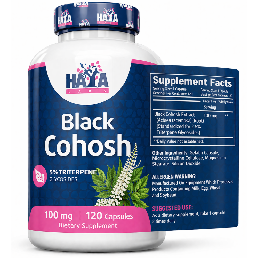 Haya Labs Black Cohosh 100 mg obsahuje extrakt z Black Cohosh (Actaea racemosa, Cimicifuga racemosa), známého také jako ploštičník hroznatý. Tato bylina pochází ze Severní Ameriky a v tradičních systémech užívání bývá spojována především s ženským komfortem a obdobím hormonálních změn.