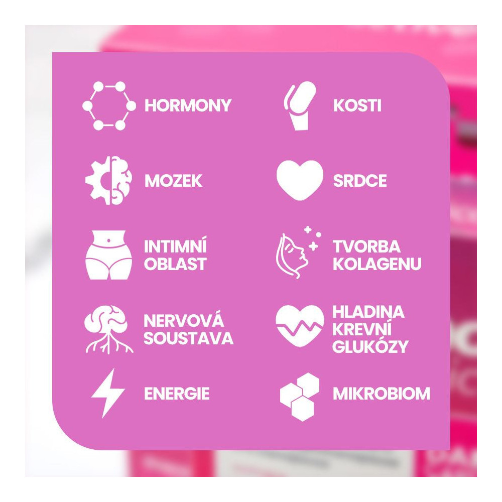 | 4. | Probiotika Lactobacillus Acidophilus, Lactobacillus Gasseri, Lactobacillus Rhamnosus - rovnováha mikrobiomu, osa střeva-mozek, obranný štít | = 3x7,5 mg v každé dávce |