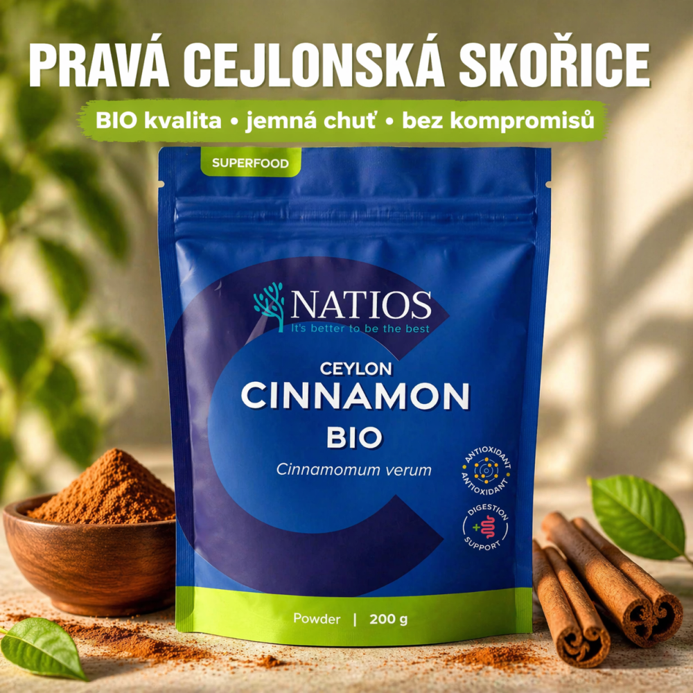 NATIOS Cejlonská skořice BIO – mletý prášek 200 gNATIOS Cejlonská skořice BIO je 100% jemně mletý prášek z pravé cejlonské skořice, který vyniká čistou, sladce kořeněnou chutí a jemnějším profilem než běžná skořice. Skvěle se hodí pro každého, kdo chce v kuchyni používat kvalitní koření s příjemnou vůní a širokým využitím. Výborně doplní ovesné kaše, jogurty, smoothie, dezerty, domácí pečení, kávu i čaj, ale překvapí i ve slaných receptech, kde dodá pokrmům hloubku a hřejivý charakter. Díky BIO kvalitě a čistému složení bez zbytečných příměsí je to surovina, po které sáhneš znovu a znovu. Cejlonská skořice je oblíbená nejen pro svou chuť, ale i pro své tradiční spojení s harmonickým životním stylem, lehkostí a každodenní péčí o jídelníček.