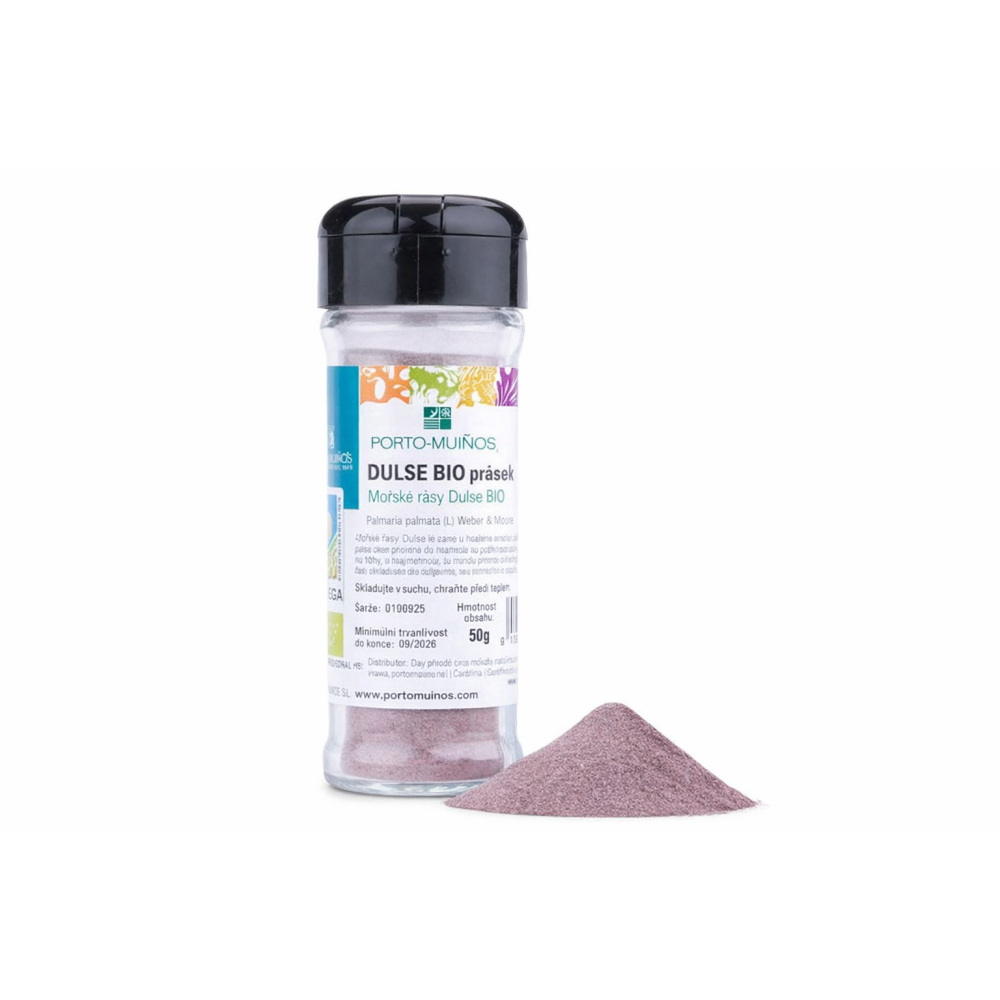 Mořské řasy Dulse BIO (prášek) – detailní informaceMořské řasy Dulse BIO ve formě prášku v praktické skleněné kořence. Řasy Dulse jsou velmi oblíbené u milovníků mořských řas. Mají jemnou, lehce uzenou a mírně slanou chuť podobnou korýšům. Lze je použít jako koření pro zlepšení chuti. Zvyšují nutriční hodnotu jídel. Mořské řasy Dulse pochází z divoké přírody z čistých vod Atlantského oceánu a jsou sbírány ručně na západním pobřeží Irska nebo na pobřeží francouzské Bretaně v západní části Lamanšského průlivu. Mořským řasám se často říká mořská zelenina. Tato zelenina mořského původu má vynikající nutriční vlastnosti a velký potenciál ve světě správné výživy. Malé množství mořských řas dodá většině pokrmů bohatou chuť a zvyšuje jejich nutriční hodnotu. Mořské řasy jsou bohaté na minerály a stopové prvky jako například jód. Mají vysoký obsah vlákniny a obsahují kvalitní bílkoviny. Hlavní výhody řas Dulse v prášku
