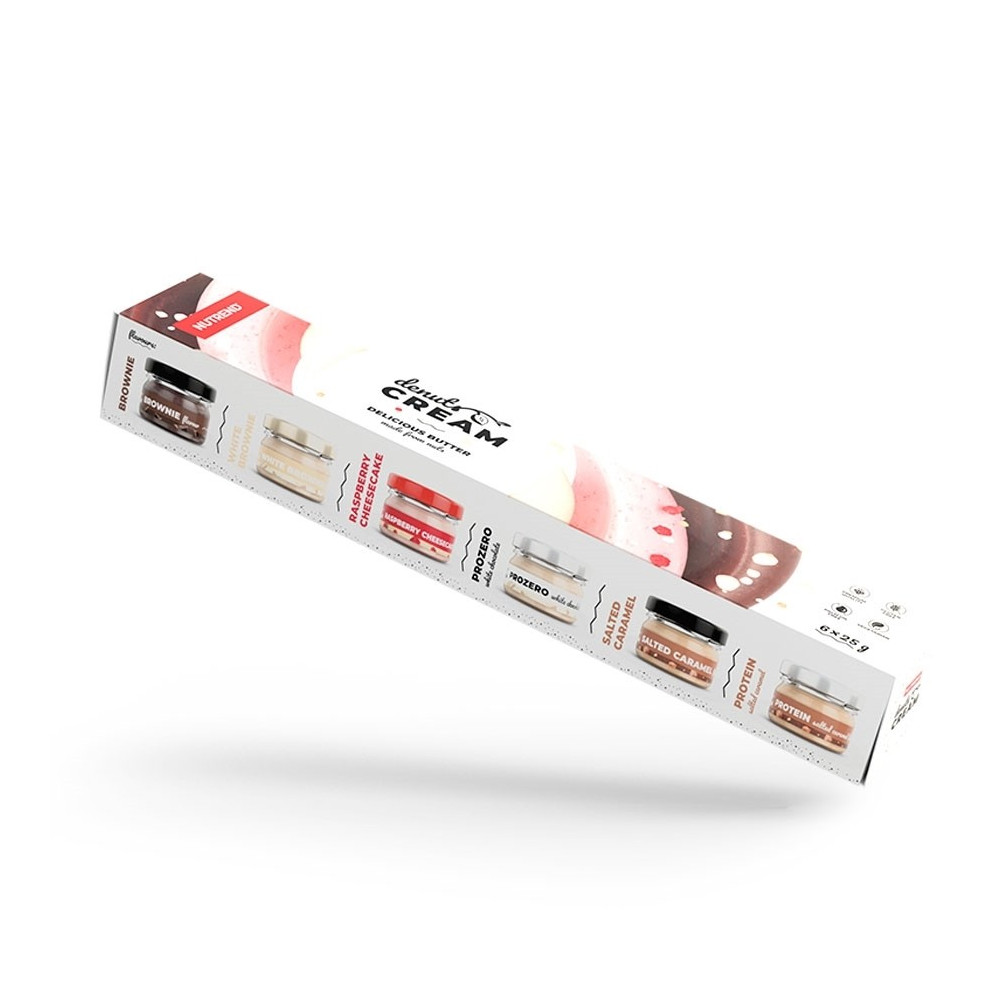 Příchuť brownie - jemný ořechový krém s mléčnou čokoládou a kakaem: lískové ořechy 30 %, kešu ořechy 25 %, mléčná čokoláda 15 % (cukr, kakaová hmota, kakaové máslo, sušené mléko, vanilkový extrakt), sušené mléko, kakao 10 %, kokosový cukr, GHÍ (máselný tuk). Může obsahovat stopy i jiných druhů ořechů, arašídů a sóji.