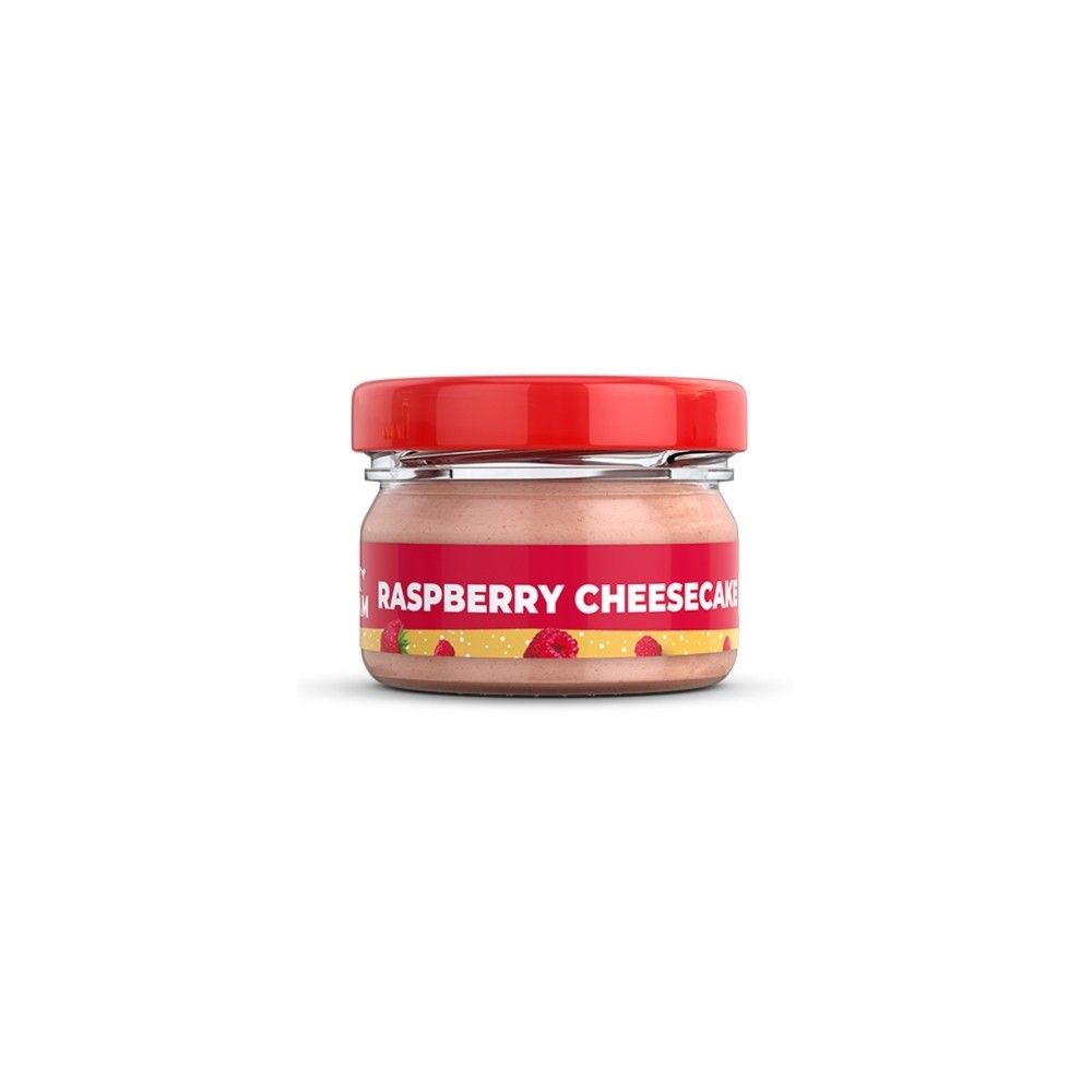 Příchuť malinový cheesecake – jemný arašídovo-ořechový krém s bílou čokoládou a malinami: arašídy 30 %, kešu ořechy 30 %, bílá čokoláda (cukr, kakaové máslo, sušené mléko, sušená syrovátka, emulgátor sójový lecitin, vanilkový extrakt), jogurtový prášek (odstředěné mléko, jogurtová kultura), sušené mléko, lyofilizované maliny 2 %. Může obsahovat stopy i jiných druhů ořechů.