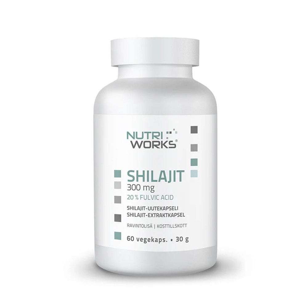NutriWorks Shilajit 300 mg jsou kapsle s extraktem shilajitu a deklarovaným obsahem 20 % fulvokyselin pro každodenní podporu vitality, výkonu a regenerace – v praktickém balení 60 kapslí.