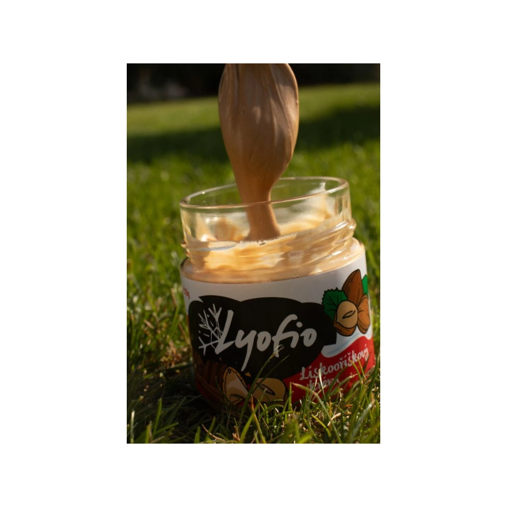 Lyofio Lískooříškový krém 220 g je poctivá oříšková pomazánka postavená na jednoduché filozofii: kvalitní suroviny a žádné zbytečnosti. Základem je 50 % lískových ořechů z italského Piemontu, doplněných pouze o cukr a mléko. Výsledkem je jemně krémová textura a plná, přirozená chuť oříšků, která potěší každého milovníka kvalitních ořechových krémů.