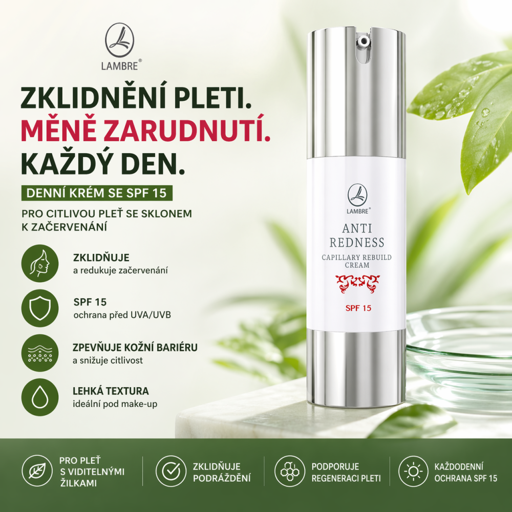 💚 Tip pro citlivou pleť se začervenáním Pokud se ti pleť červená při přechodu z tepla do zimy, po sprše nebo při větru, tenhle krém je ideální jako každodenní „komfortní štít“ – zklidní, sjednotí vzhled a díky SPF 15 pomůže chránit i před UV faktory, které zarudnutí často zhoršují. |