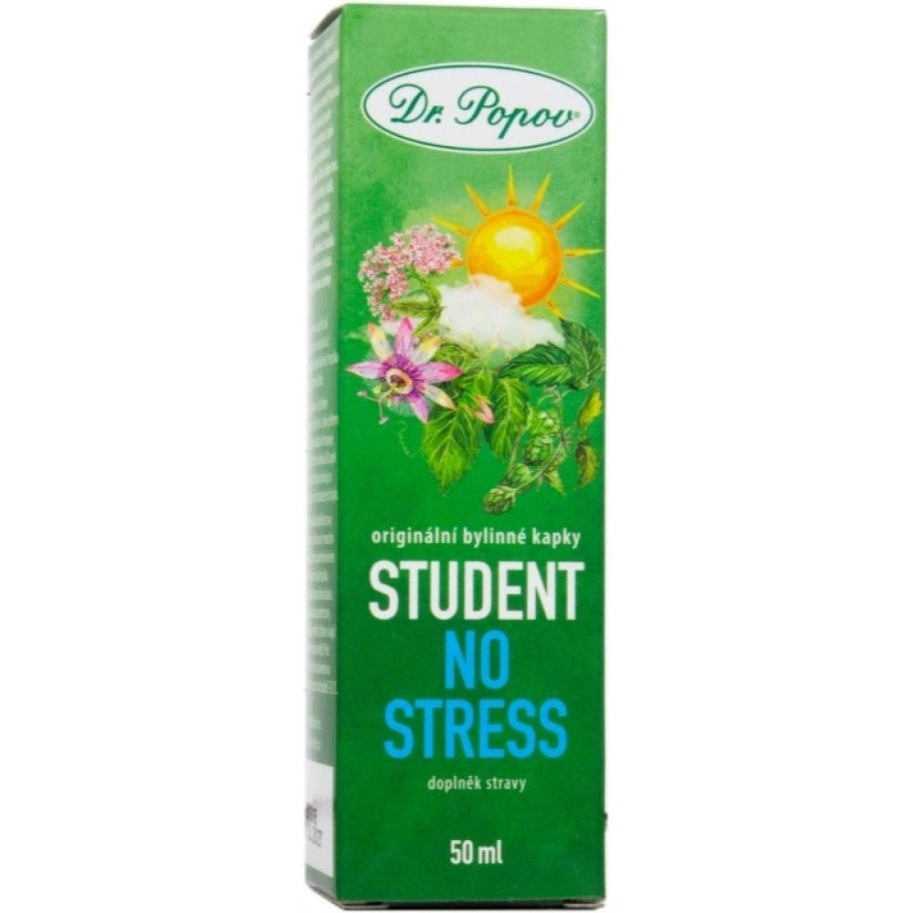 Dr. Popov STUDENT No stress jsou bylinné kapky pro chvíle, kdy je toho „už prostě moc“ – zkouškové, deadliny, státnice nebo jen náročný den ve škole i v práci. Kombinace tradičně užívaných bylin pomáhá zklidnit vnitřní napětí, podpořit pohodovější usínání a navodit pocit větší psychické pohody.