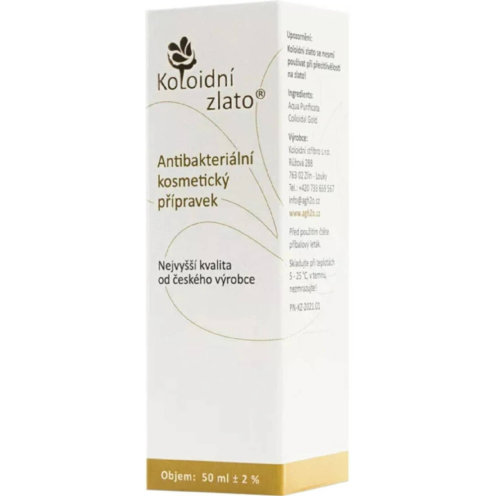 • Koloidní zlato = vodný roztok kationtů zlata (Au+) s nanočásticemi čistého zlata v Aqua Purificata.