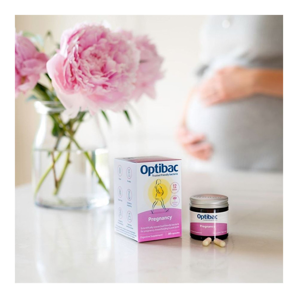 Optibac Pregnancy jsou šetrná probiotika speciálně vyvinutá pro ženy v těhotenství, při kojení a v raném mateřství. Kombinují 3 klinicky ověřené kmeny probiotických kultur (Lactobacillus rhamnosus HN001, Lactobacillus acidophilus La-14®, Bifidobacterium lactis HN019) s prebiotiky, které společně podporují intimní zdraví, zažívací trakt a přirozenou imunitu. Každá kapsle obsahuje garanci 12 miliard KTJ a je zcela bezpečná i při dlouhodobém užívání v období těhotenství a kojení.