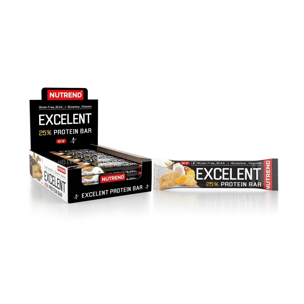 Hledáte chutnou a kvalitní proteinovou tyčinku? Excelent Protein Bar od značky Nutrend nabízí až 24 % bílkovin v jedné porci, doplněné o aminokyseliny BCAA a komplex důležitých vitamínů. Je ideální jako svačina po tréninku, během dne nebo kdykoliv potřebujete doplnit energii a živiny.
