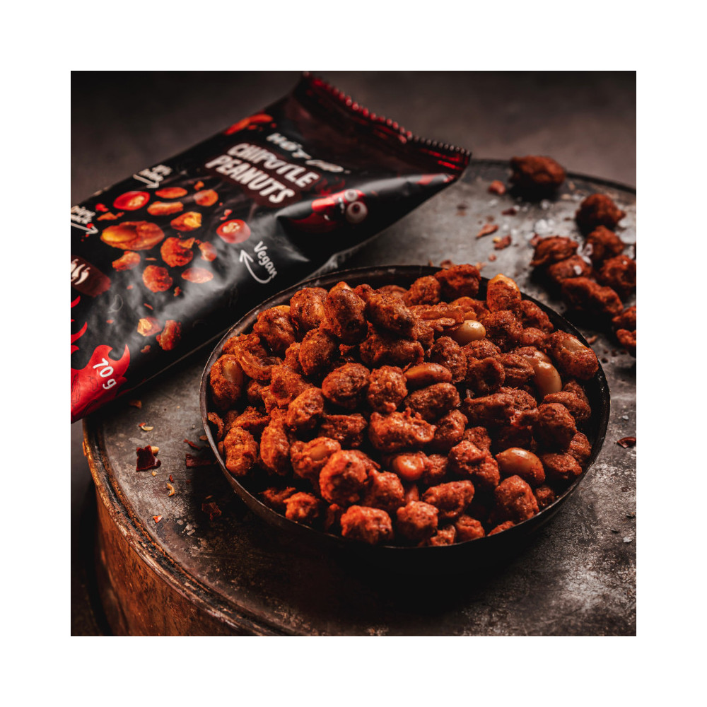 Koření, které jsme v tomto případě zvolili, pochází z papriček chipotle. Ty vznikají uzením papriček Jalapeño na pekanové dřevě. To jim pak dodá příjemné aroma a plnou vybalancovanou chuť, která se k arašídům skvěle hodí. Křupavé těstíčko se střední pálivostí a lehce zauzenou chutí si tě získají už po prvním křupnutí.