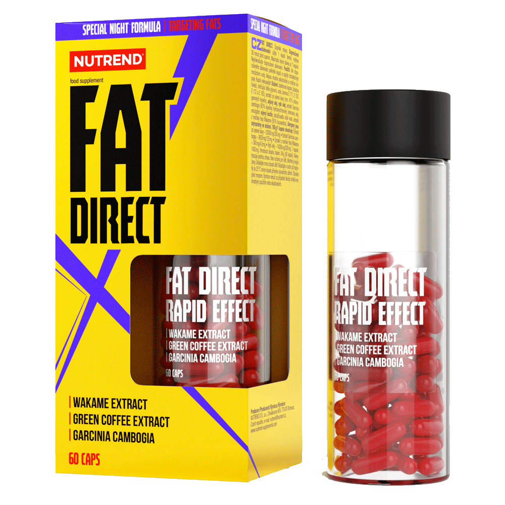 Nutrend FAT DIRECT je doplněk stravy vhodný pro užívání během redukční diety. Tento noční spalovač obsahuje kombinaci přírodních extraktů, která se skvěle osvědčila při snaze o redukci tělesného tuku. Receptura obsahuje výtažky z mořských řas wakame, ale i z garcinie cambogie a ze zelené kávy. Produkt Fat Direct neobsahuje povzbuzující látky a je určen k večernímu užití (spalovač tuků na noc) - stačí 1 kapsle 30 minut před spánkem.