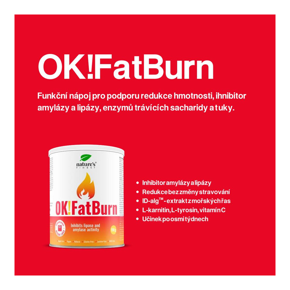 OK! Fat Burn je funkční nápoj navržený pro podporu přirozené redukce hmotnosti a aktivaci metabolismu tuků. Spojuje sílu patentovaného mořského extraktu ID-alg™ s aminokyselinami L-karnitin a L-tyrosin a doplněním o vitamín C pro podporu energie a imunity.