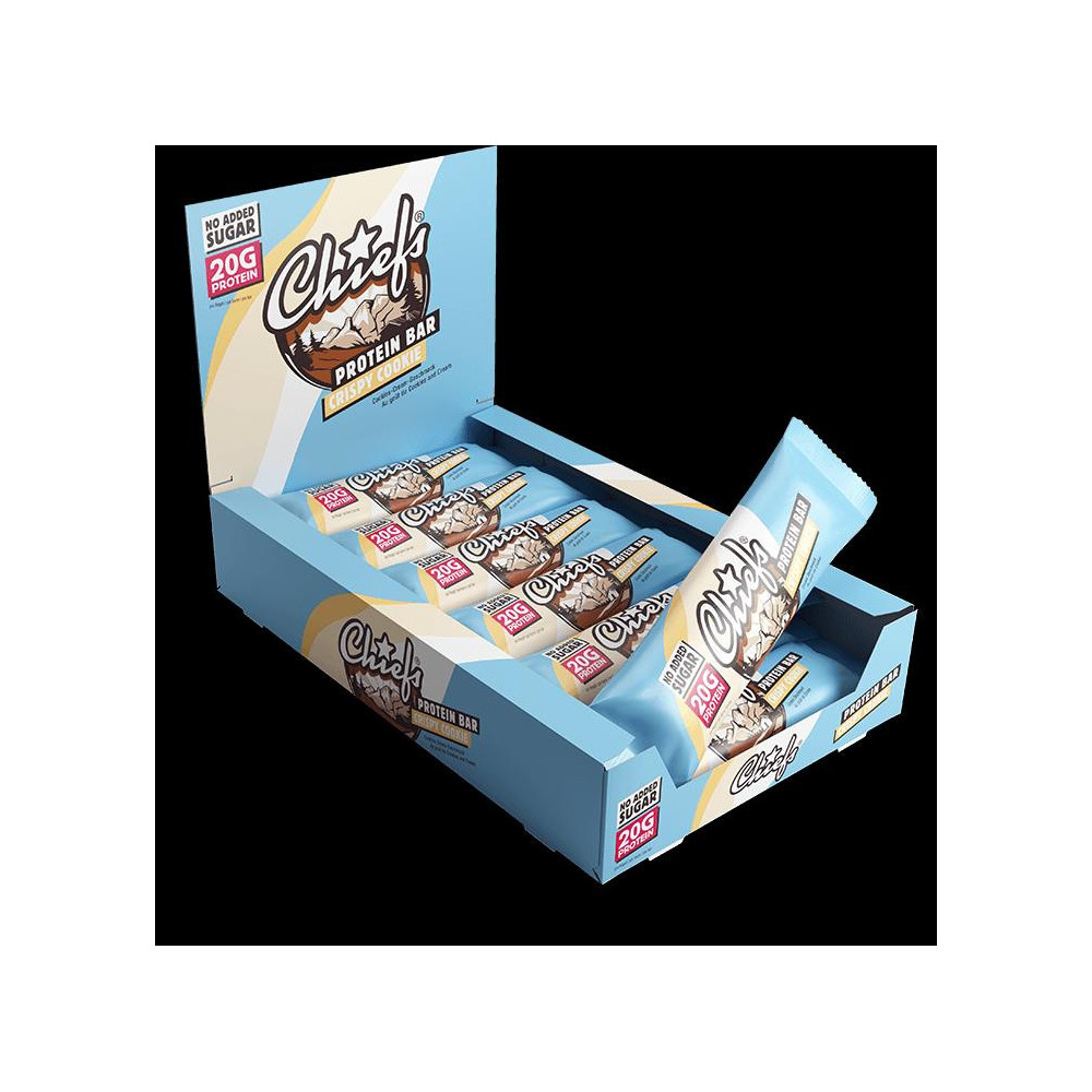 Křupavé a voňavé po Švýcarské čokoládě - to je Chiefs proteinová tyčinka