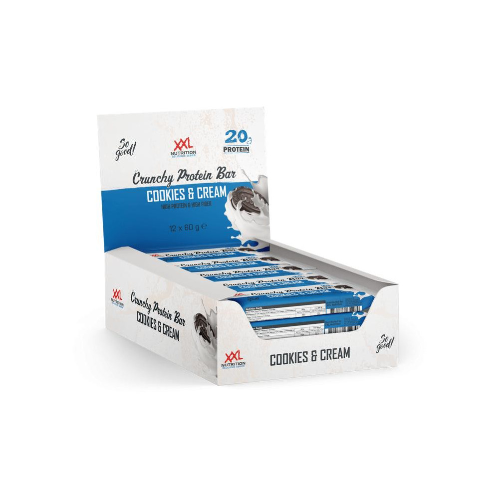 Proteinové tyčinky tvrdé, suché a s chemickou chutí? Těmto dnům je konec! Křupavé proteinové tyčinky od XXL Nutrition jsou skvělým a lahodným způsobem, jak získat další bílkoviny. K dostání jsou v příchutích Peanut Butter Crunch a Cookies & Cream a brzy k nim přibyde nové příchu Stracciatella Crunchy. Tato proteinová tyčinka má křupavou texturu a 21 gramů bílkovin v jedné tyčince!