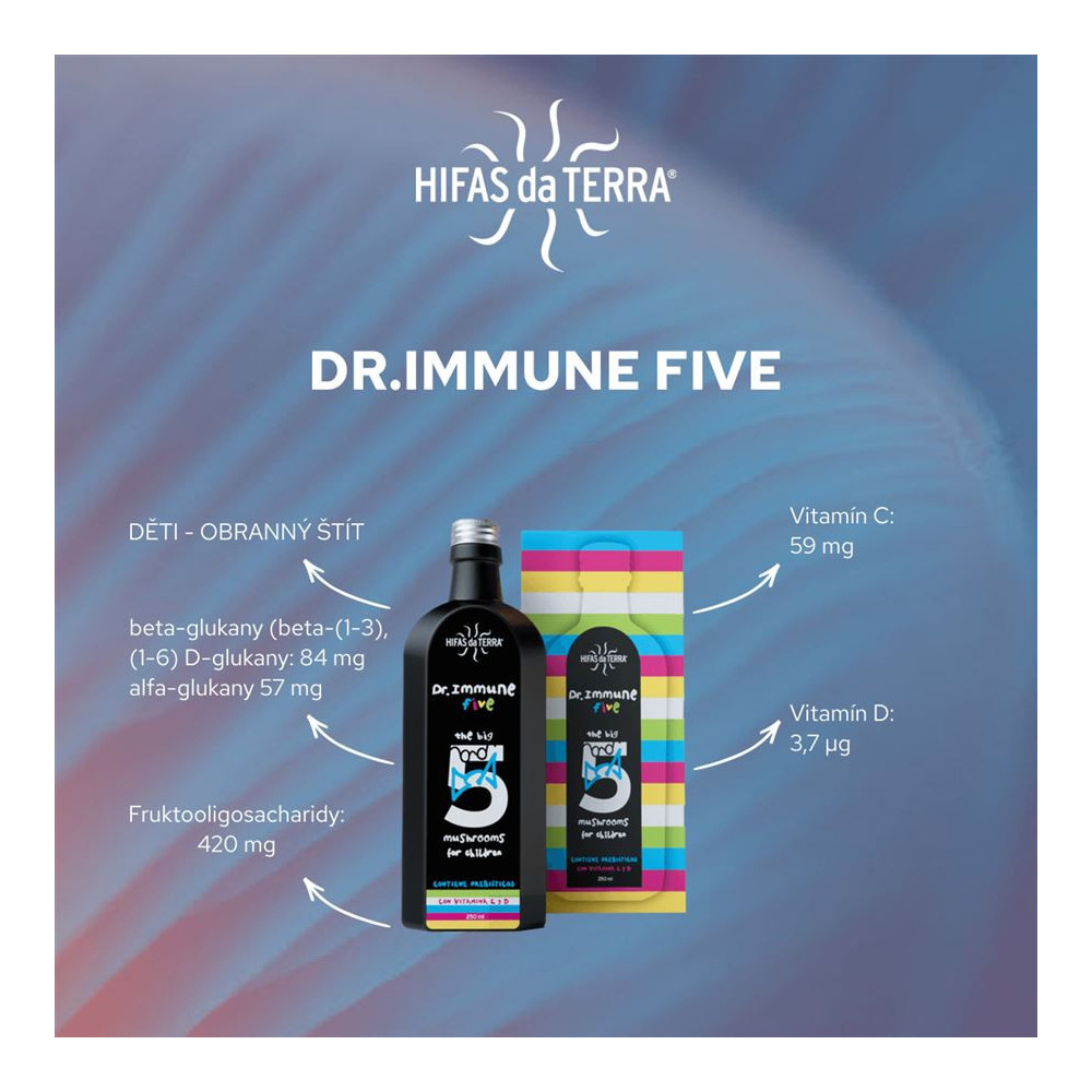 Sirup je určen pro dětskou populaci; díky obsahu vitamínu C a D přispívá k normální funkci imunitního systému*. Obsahuje vysoce kvalitní extrakty z pěti hub.
