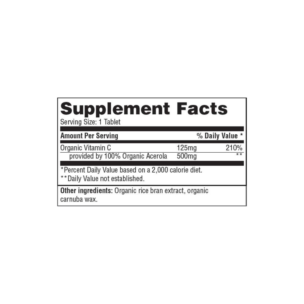 Acerola použitá v produktu pochází z certifikovaného ekologického pěstování a podle výrobce z malých farem poblíž Amazonského pralesa v Brazílii. Každá tableta obsahuje 125 mg vitaminu C, který je dodán z 500 mg 100% organické aceroly.