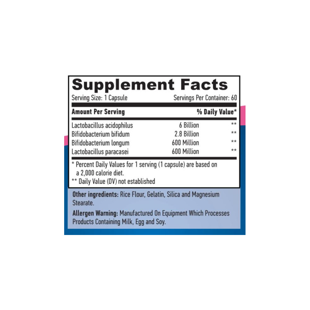 "10 miliard Acidophilus and Bifidus probiotic complex" od farmaceutické firmy Haya Labs může pomoci v případě ztráty „dobrých“ bakterií (např. Po uživání antibiotik), tím, že je zpět doplní do vašeho těla. Tento komplex je navržen také tak, aby snížoval hladinu „špatných“ bakterií v těle, které jsou zodpovědný za infekce a další zdravotní problémy. Úspěšně vyrovnává úroveň „dobrých“ a „špatných“ bakterií a také udržuje dobré fungování těchto procesů v těle.