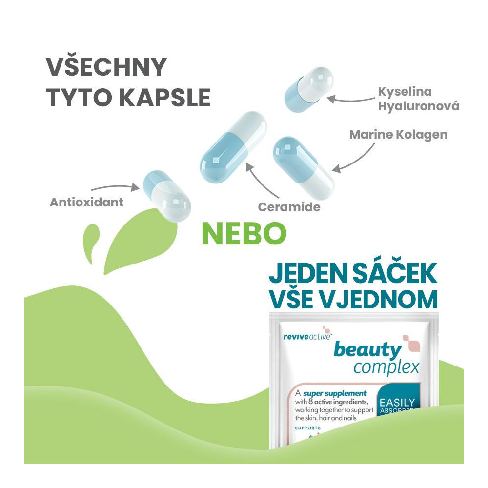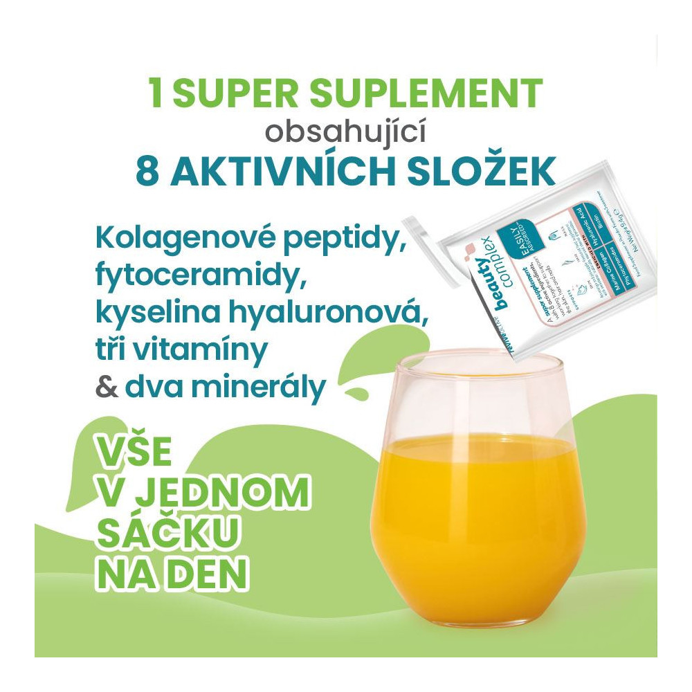 Beauty Complex je komplexní produkt z kategorie vše v jednom, s obsahem všech nejdůležitějších doplňků stravy v jednom produktu a v jedné denní dávce!