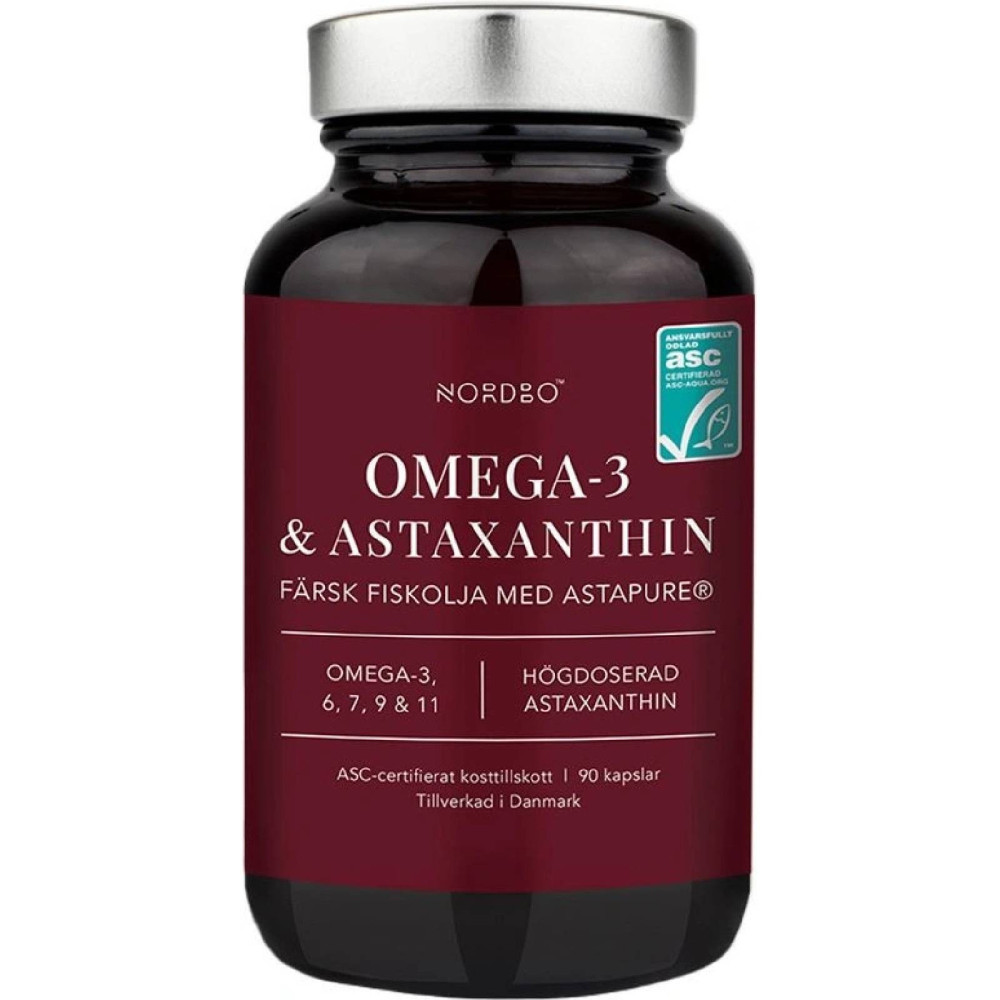 Nordbo Omega 3 & Astaxanthin (90 kapslí) – nativní skandinávský rybí olej Ecolomega® s certifikací ASC (včetně EPA & DHA) doplněný o silný antioxidant AstaPure®.