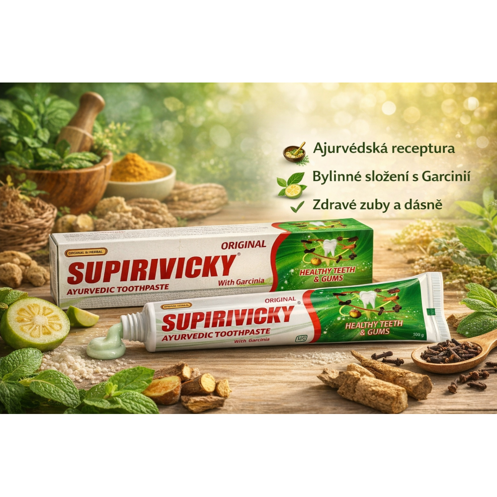 Siddhalepa Supirivicky je přírodní zubní pasta vytvořená podle principů tradiční ajurvédy. Obsahuje více než 10 léčivých rostlin, které harmonizují ústní dutinu, osvěžují dech a chrání před vznikem zubního kazu i zánětů.